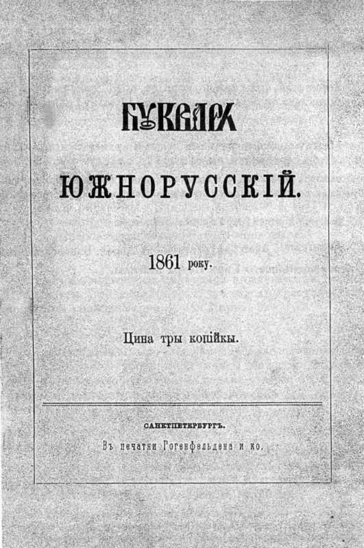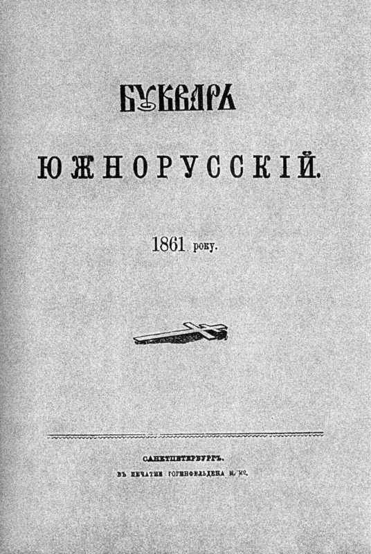 – першодрук окремою книжкою: Букварь южнорусский. 1861 року. Санктпетербург. В печатни Гогенфельдена и К.