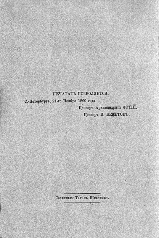 «Букварь» проходив подвійну цензуру – духовну та світську; 31 грудня 1860 р. цензор В. М. Бекетов підписав квиток на його випуск із друкарні [див.: Бородін В. С. Т. Г. Шевченко і царська цензура: Дослідження та документи. – С. 73–76, 152]. На початку січня 1861 р. «Букварь» вийшов у світ. Рахунок друкарні Й. Гогенфельдена і К° за надрукування «Букваря» становив 195 крб. 50 коп. (Інститут літератури ім. Т. Г. Шевченка НАН України, відділ рукописів, ф. 1, № 494).